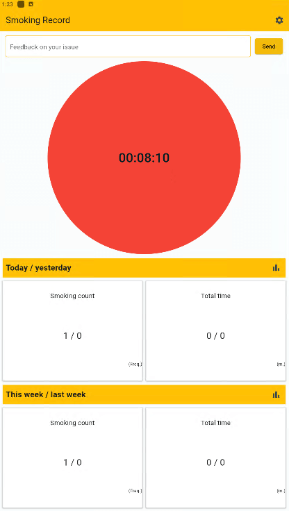 Monitor Your Progress: Over time, the app will show your smoking count for today, yesterday, and even last week. By comparing these stats, you can motivate yourself to stick with your plan and further reduce your smoking frequency.